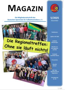 Der Link für den PDF-Download wurde bereits verschickt, die Postbezieher müssen sich noch etwas gedulden, ehe sie das letzte Mitgliedermagazin in diesem Jahr (Ausgabe 5/25) in den Händen. Neben einem Splitter zur JHV und einen Bericht zum DSFS-Kick sind diesmal wieder eine aktuelle Berichte von Regionaltreffen enthalten.