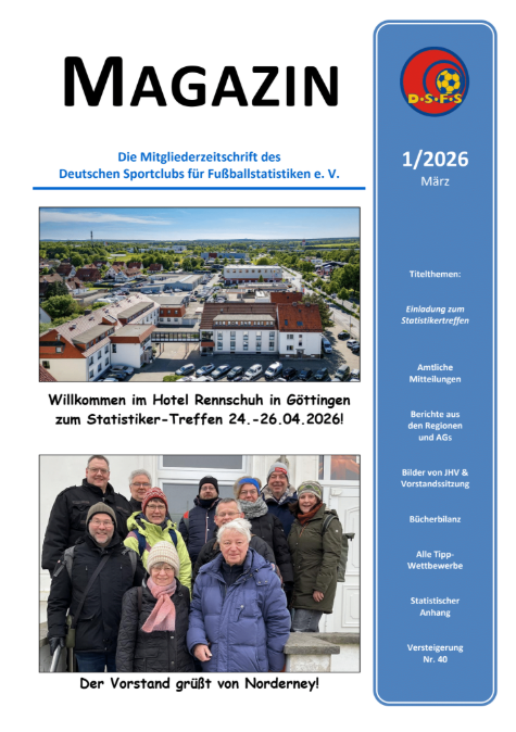 Im statistischen Anhang sind diesmal die Futsal-Regionalligen der Saison 2024/25 zu finden. Unser Mitglied Georg Lemm hat „Die Fußballmetropolen seit der Wiedervereinigung Deutschlands“ untersucht. Berlin mitsamt seinem Speckgürtel hat laut seiner Auswertungskriterien (alle Vereine ab 91/92 von Bundesliga bis Regionalliga) die höchste Dichte an erfolgreichen Fußballvereinen. Die zweite Untersuchung mit der ausschließlichen Berücksichtigung der eingleisigen 3. Liga neben der 1. und 2. Bundesliga zeigt hingegen, dass der Nordrhein die größte Dichte erfolgreicher Vereine aufweist.
