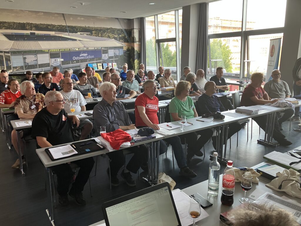 Im Verlauf der Jahreshauptversammlung 2025 in Rostock hatte am 19.09.25, 15:30 Uhr, der Regionalleiter Nordost, Hans-Dieter Brüssow, zu einem IT-Workshop in den Tagungsraum „Ostseestadion“ im Hotel eingeladen. Gedacht war dieser Workshop für die Regionalgruppe Nordost um Besonderheiten im Umgang mit digitalen Hilfsmitteln zu erörtern. Über 20 Vereinsfreunde nahmen teil, darunter auch viele aus anderen Regionalgruppen, die selbstverständlich herzlich eingeladen waren. Unsere Regionalgruppe war vertreten – in alphabetischer Reihenfolge – durch: Ralf Härtwig, Kalle Latussek, Daniel Ledderbohm, Andreas Müller, Jürgen Reiff, Matthias Riemann, Arndt Rückert, Roland Schmidt, Torsten Schmidt und Uwe Schmidt. Sehr gefreut haben wir uns über den Besuch unserer beiden Datenbankexperten Bernd Timmermann und Bernhard Nather sowie allen Teilnehmern, die sich für den nordostdeutschen Fußball interessieren.